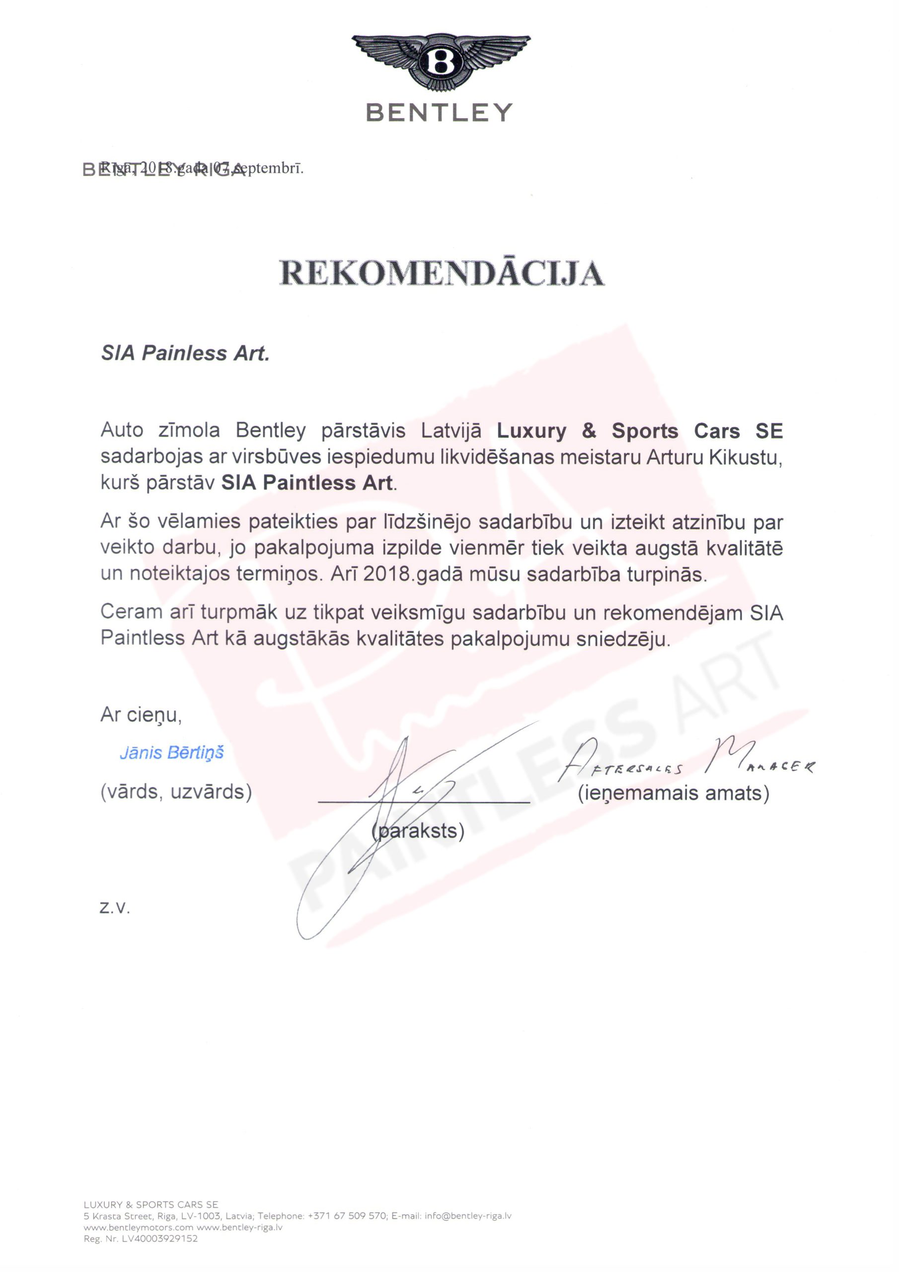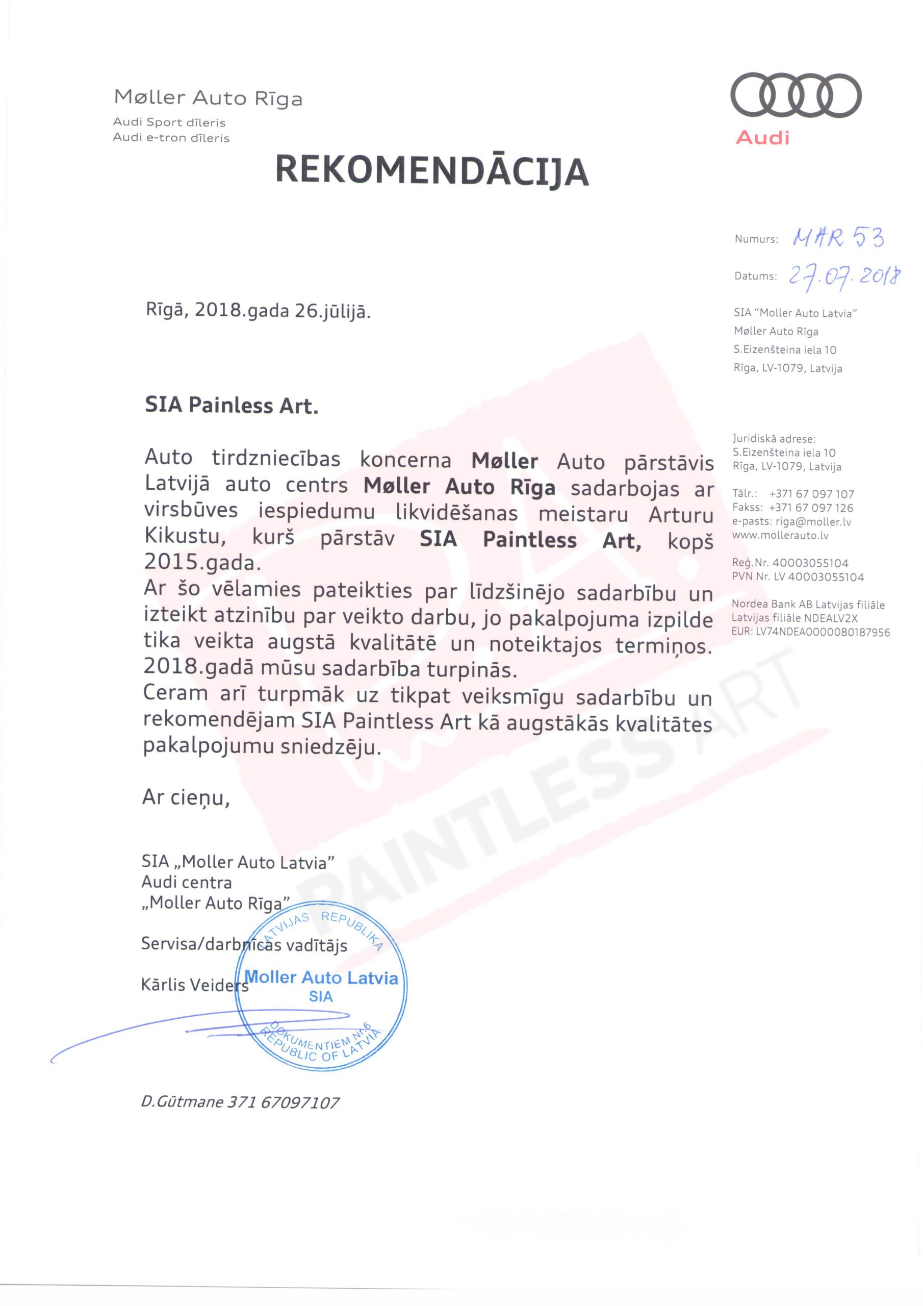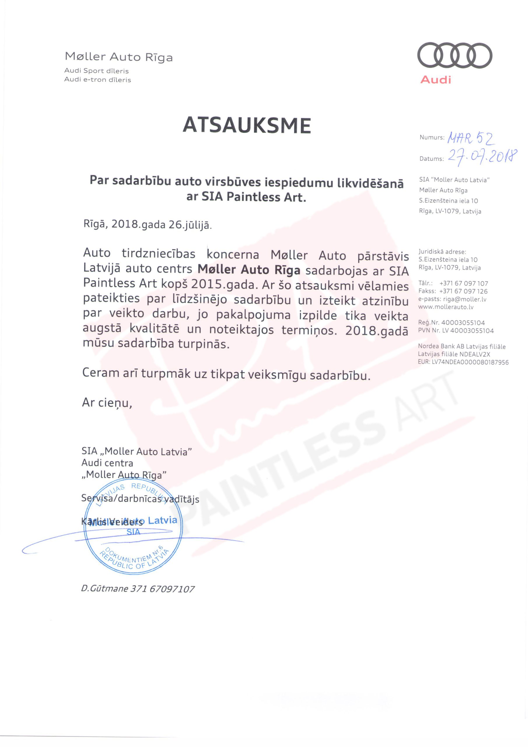 Tiek saglabāts rūpnīcas krāsu laku pārklājums. Saglabājas pārklājuma sākotnējais biezums, līdz ar to auto “bojājumu” dēļ nekļūs lētāks.